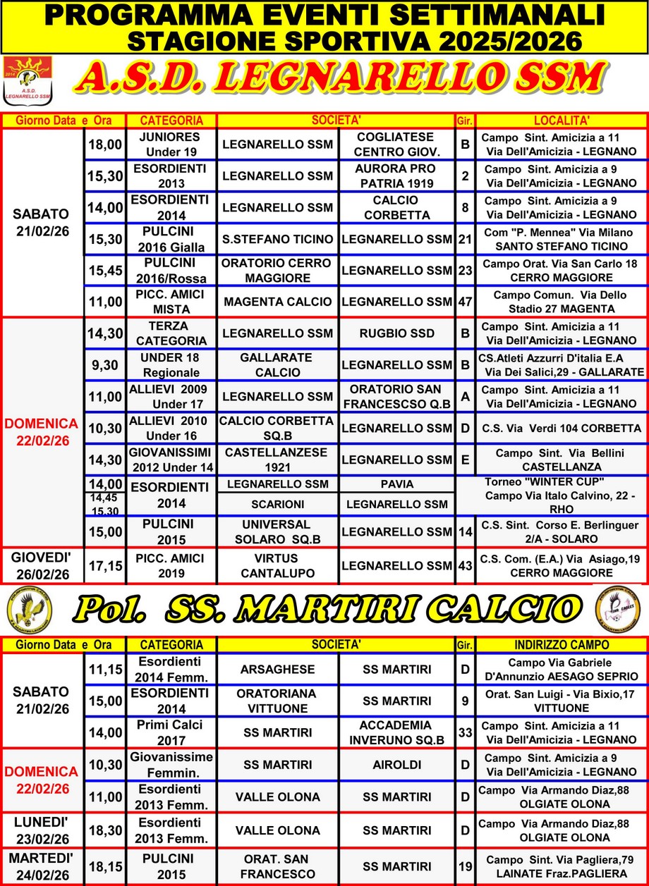 Era ormai il lontano 2017 quando partì il progetto di unione tra due Società della stessa Città; a legarle la stessa filosofia nel modo di pensare il calcio, inteso come momento di aggregazione, abnegazione e soprattutto divertimento. Per comprendere di quale progetto si stia parlando, dobbiamo far riferimento all’accordo intercorso tra ASD Legnarello e SS. Martiri Polisportiva Calcio ASD, che ha portato le due Società ad un’unione di forze oltre che di intenti, che ha avuto come logica conseguenza la mancata dispersione di risorse economiche ed organizzative, facendo si che la A.S.D. Legnarello SSM sia diventata un punto di riferimento calcistico nella Città e circondario di Legnano.